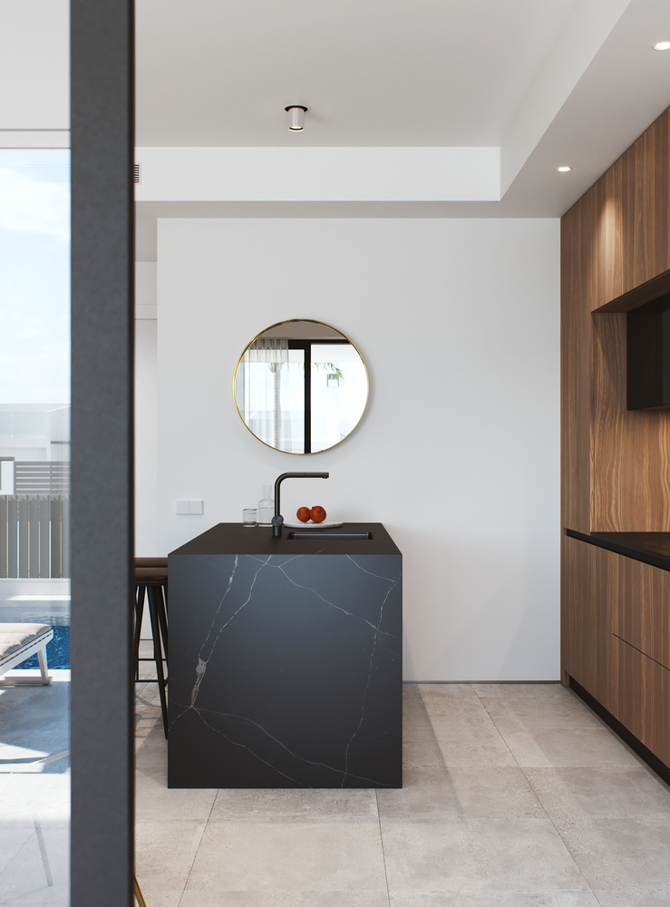 Deze vrijstaande villa’s worden gebouwd op het indrukwekkende Santa Rosalia lake and life resort nabij Los Alcázares vlakbij Mar Menor gelegen in de provincie Murcia. Het resort ligt op een afgesloten urbanisatie waar de woningen om een centraal park worden gebouwd. Een echte eyecatcher is de enorme lagune, het grootste kunstmatige zwembad van Europa welke gereinigd wordt volgens de laatste duurzame filter technologie waardoor minder chemicaliën, energie en water verbruikt wordt. De lagune heeft 2 eilanden, diverse stranden, een Beach club en wandelpaden. Het resort is verder voorzien van een zeer grote variatie aan bomen en planten wat op een natuurlijke wijze is aangelegd. Op het resort zelf zijn diverse sportfaciliteiten zoals kajakken, zeilen, golf, tennis en voor de kinderen is er een kinderspeelplaats. Bij het populaire Mar Menor, een binnenzee welke is gescheiden door een landtong van de Middellandse zee, kunt u verschillende watersporten beoefenen zoals surfen, kajakken, zeilen en zwemmen. Het water is er altijd warmer dan de Middellandse zee en op het diepste punt slecht 7 meter. Een erg gezellig gebied met mooie stranden, diverse haventjes en leuke eettentjes. Wandelaar en vogelspotters kunnen genieten in het vlakbij gelegen natuurpark “Salinas de San Pedro del Pinitar”. Golf liefhebbers kunnen terecht bij Calera Mar Menor Golf & Spa Resort op slechts 1 km afstand. Voor een stedentrip kunt u het levendige Murcia en Cartegena bezoeken.