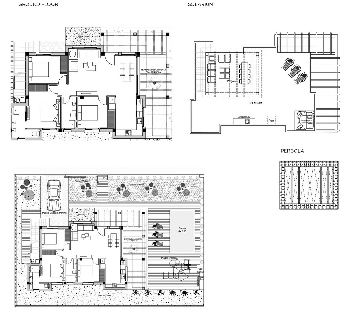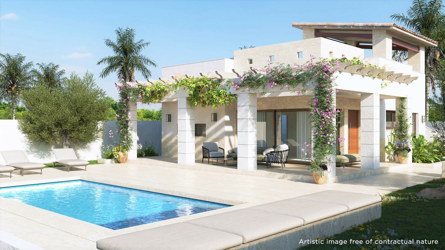 Deze schitterende vrijstaande Villa’s gebouwd op een plot van 480 m2 hebben 3 slaapkamers en 2 badkamers waarvan 1 en suite. Rondom is een grote mooi aangelegde tuin en er is een zwembad van 3,5 x 6 meter met een buitendouche. Het enorme solarium van 80 m2 is een geweldig zonneterras met mooi uitzicht. De villa’s hebben een eigen oprit met elektronische poort.