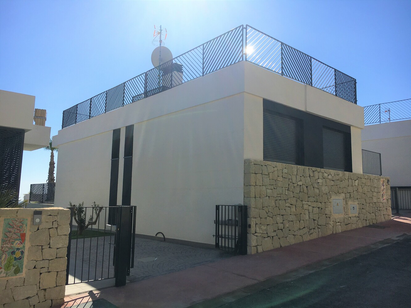 De ligging van deze gelijkvloerse Villa’s in de natuurlijke omgeving van veel groen, bergen en het betoverende zeezicht zorgen ervoor dat deze woningen zeer gewild zijn. De Villa’s zijn aan de buitenzijde deels afgewerkt met natuursteen wat een erg mooie uitstraling heeft. Er zijn 3 slaapkamers en 2 badkamers, 1 ervan en suite. De open keuken is voorzien van een inductie kookplaat, oven, afzuigsysteem en een apart spoeleiland. De warmwatervoorziening wordt geregeld door een warmtepompboiler “airotermica” en de gehele woning is voorzien van een airconditioning. De Villa’s hebben een privé oprit. Optie is een zwembad van 20 m2 en een solarium. De afgesloten en beveiligde urbanisatie heeft een gemeenschappelijk zwembad.