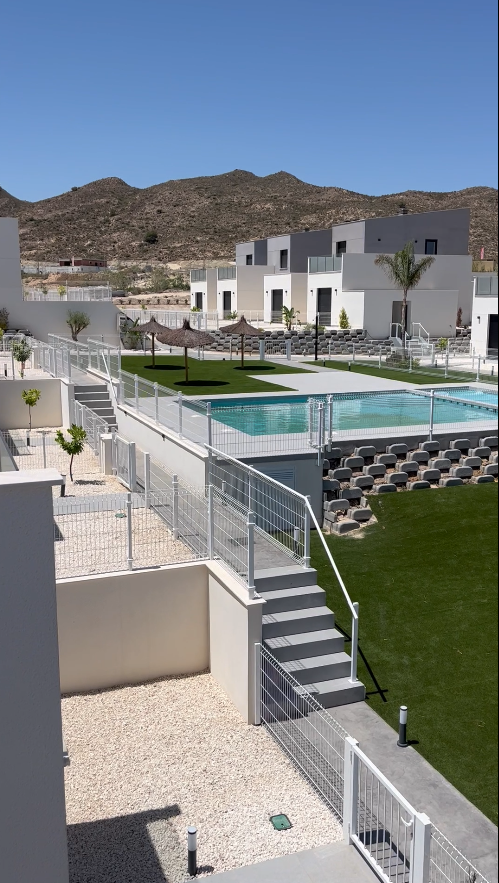 Deze mooie geschakelde gelijkvloerse hoekwoningen en tussenwoningen worden gebouwd op het Golf and Country - Sport & Welness resort “Altaona” in Murcia. Dit schitterende resort met een oppervlakte van 360 hectare is nog volop in ontwikkeling en is een absolute droomlocatie. Een gezinsvriendelijke omgeving met meer dan voldoende recreatiemogelijkheden zoals het unieke surfparadijs met fantastische golven ontwikkelend volgens de laatste wavepool technologie met meer dan 50 instellingen, de golfbaan, padel, tennis, fitnessfaciliteiten en de gezellige ontmoetingsplaats “Parador”.