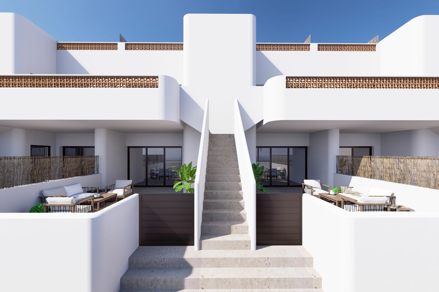 Actie: de 1e 3 verkopen inclusief airco, witgoed en geheel gemeubileerd. Kleinschalig complex in moderne Ibiza-stijl met begane grond appartementen voorzien van 3 slaapkamers en 2 badkamers in Dolores