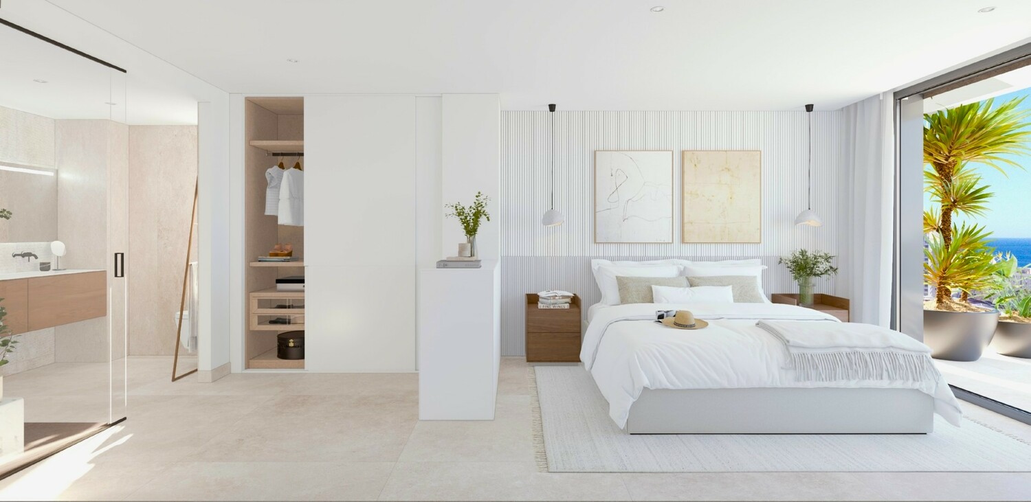 Deze moderne luxe Penthouses op de 16e verdieping van het appartementencomplex hebben een bebouwd oppervlak van 106 m2 en zijn voorzien van 3 slaapkamers en 2 badkamers waarvan 1 badkamer en suite. De gehele woning heeft vloerverwarming en de bediening van alle apparatuur wordt geregeld via het domotica systeem. De ruime keuken met kookeiland is inclusief apparatuur van Siemens en er is een aparte ruimte gecreëerd voor de was. Het terras grenzend aan de living is 27 m2 en het solarium, met schitterend uitzicht, maar liefst 125 m2. Het appartementencomplex ligt op slechts 700 meter van de zee en de woningen zijn geschikt voor zowel permanente bewoning als verhuur. De parkeerplaats met berging is in de ondergrondse parkeergarage. Er is veel aandacht besteed aan sport- en ontspanning, zo zijn er maar liefst 3 verwarmde zwembaden waarvan 1 een half olympisch 25 meter bad, en een jacuzzi in de binnentuin. Ook zijn er veel groene gebieden met een totaal oppervlak van 3500 m2. Er is een padelbaan en op de 10e verdieping een binnenzwembad, een gym en een spa met een ontspanningsruimte.