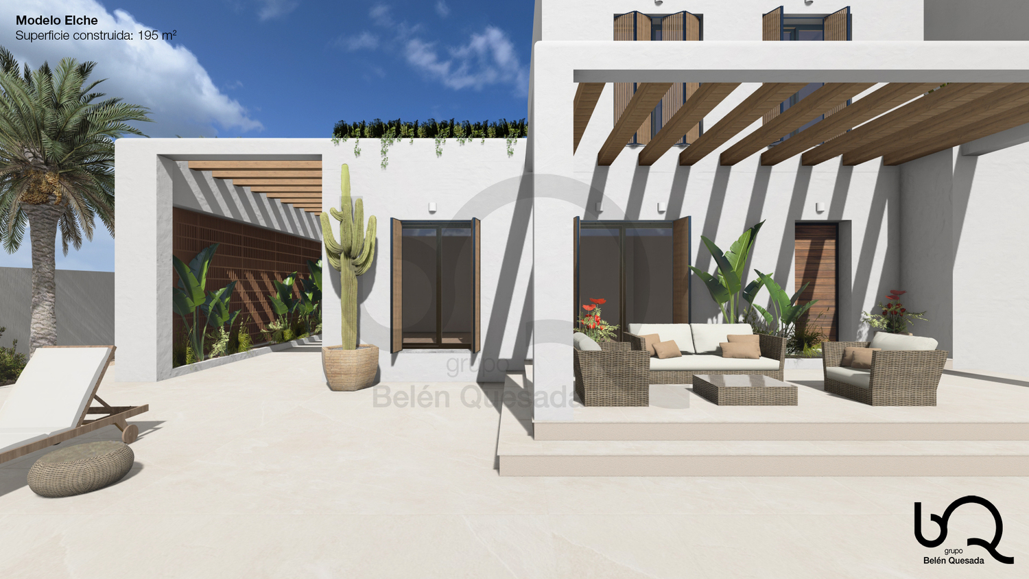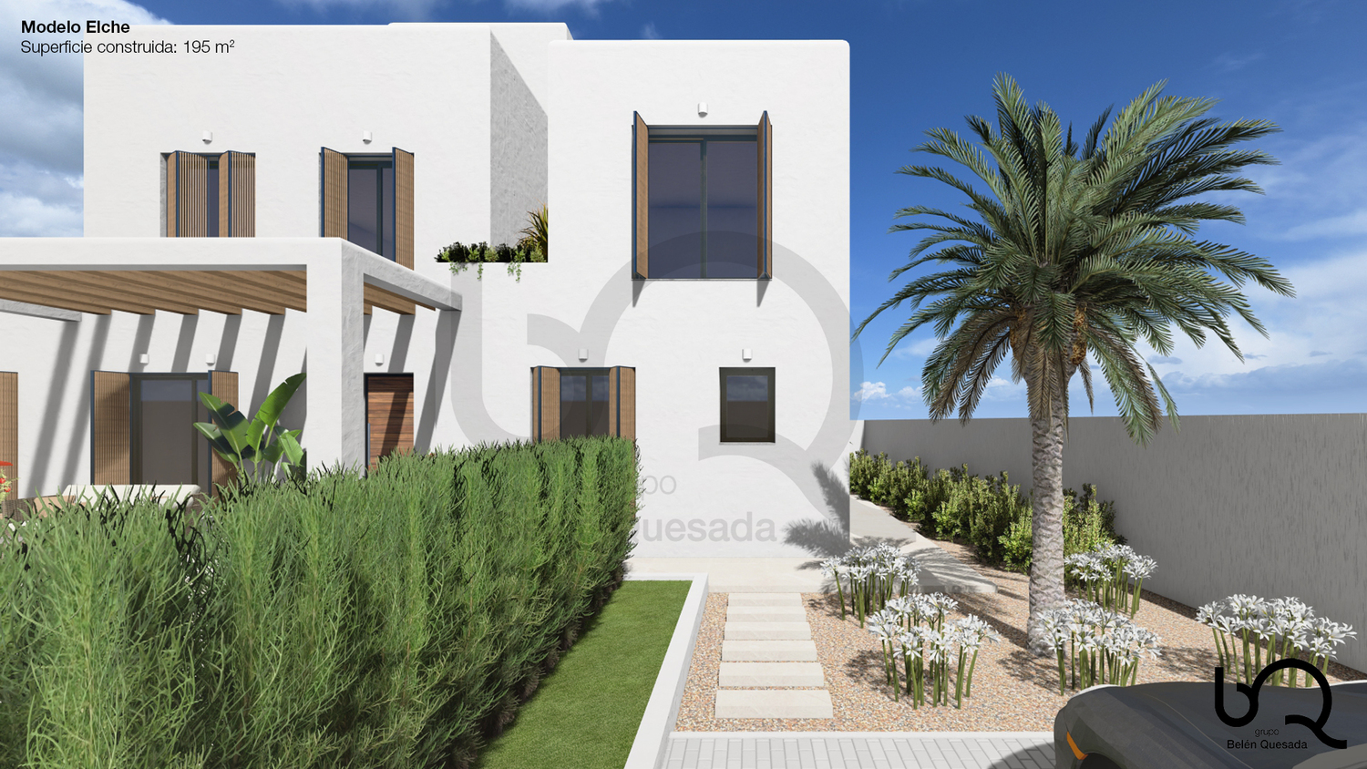 Fraaie Ibiza stijl Villa met 2 verdiepingen in Quesada, een charmant plaatsje op slechts een paar km van de Middellandse zee. Het wordt gebouwd op een iets hoger gelegen deel waardoor er deels uitzicht is op de zee en het zoutmeer. Het klimaat is hier zeer gezond met name door de invloed van de zoutmeren. De gemiddelde jaarlijkse temperatuur is 20°C, met 320 dagen zon. Het is hier heerlijk genieten met op korte afstand de geweldig mooie stranden van Guardamar. Het natuurreservaat El Recorral en La Mata liggen eveneens op korte afstand. De vele horecagelegenheden in het centrum van Quesada bevinden zich op 2,5 km. Er zijn 2 grote supermarkten in de buurt.